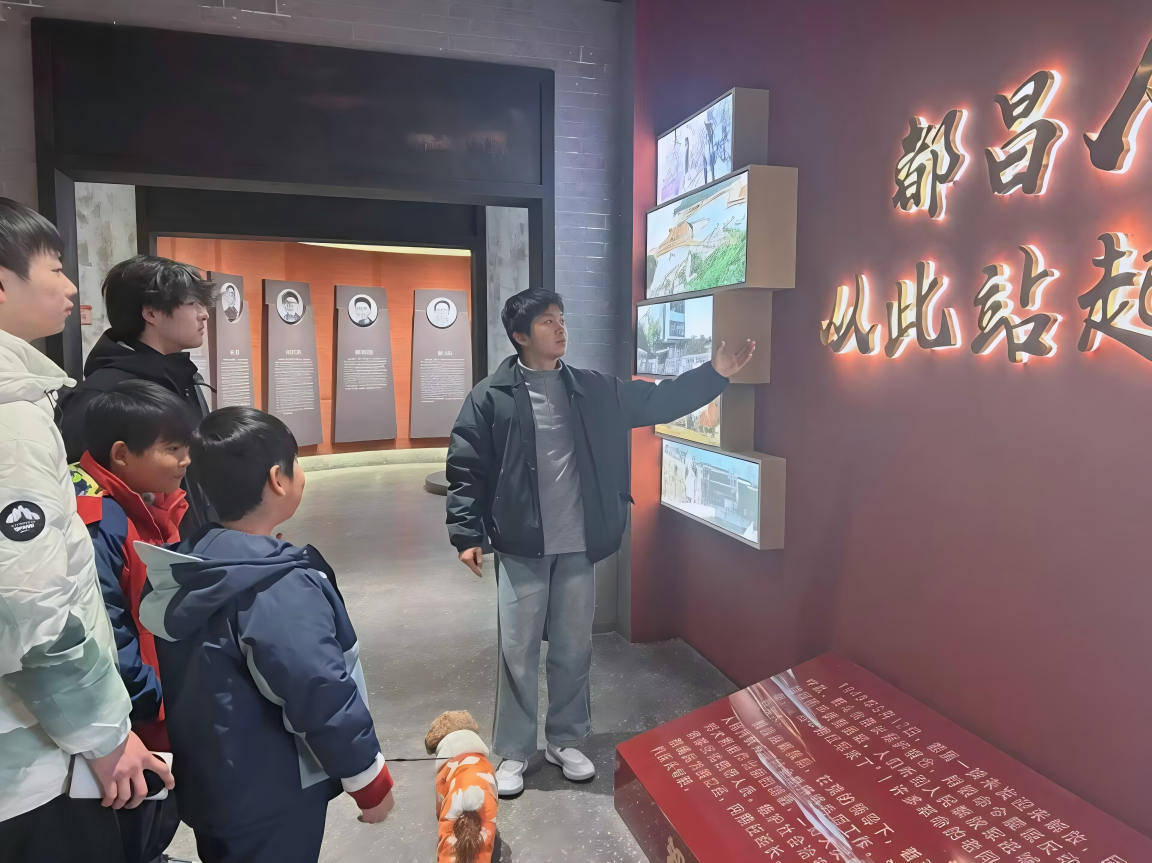 在赣北都昌红色革命公园及纪念馆,潘英拓同学依托家乡红色资源,面向当地中小学生开展红色宣讲。他以都昌革命历程为主线,讲述了当地早期党组织创建、革命先辈们武装斗争的英勇事迹,并结合都湖鄱彭游击根据地的历史,阐释了革命先辈的坚定意志与崇高信仰,让红色精神浸润青少年心灵。潘英拓以生动的史实激发了孩子们的爱国情怀,这次宣讲也让自己深受教育。